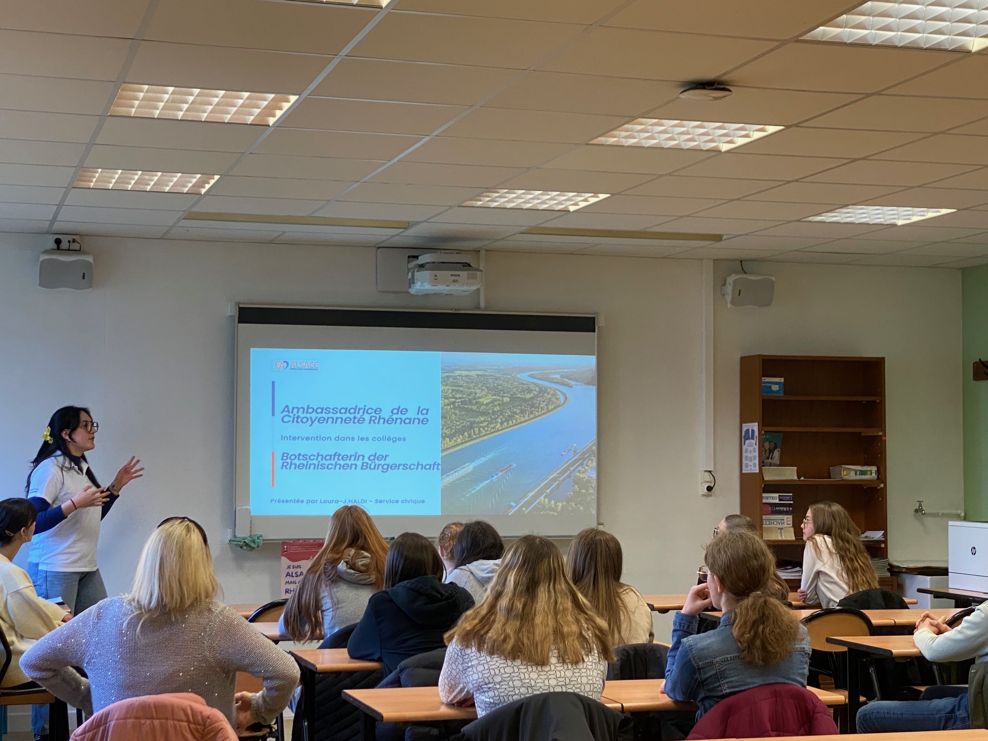 Les élèves bilingues et issus des classes germanistes du collège Pierre Claude de Sarre -Union ont pu bénéficier des ateliers animés par Laura-Jean HALDI ,Ambassadrice de la citoyenneté rhénane.